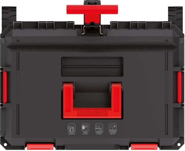 Grote terreinwielen en een telescoopgreep zorgen voor comfortabel verplaatsen, ook op oneffen ondergrond. Geïntegreerde aluminium geleiders in het deksel van geselecteerde modules maken van de koffer een stabiele werktafel. Directe belasting tot 120 kg maakt gebruik als opstap mogelijk, terwijl de interne organisatie gereedschap altijd binnen handbereik houdt.