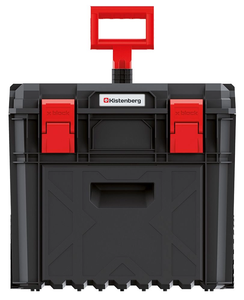 Professionele rijdende gereedschapskoffer X-BLOCK PRO met een robuuste constructie, telescoopgreep en grote wielen voor eenvoudig transport. Biedt modulaire koppeling met andere boxen, stof- en waterdichte afdichting en een draagvermogen tot 50 kg voor veilige opslag van zelfs zwaar gereedschap.