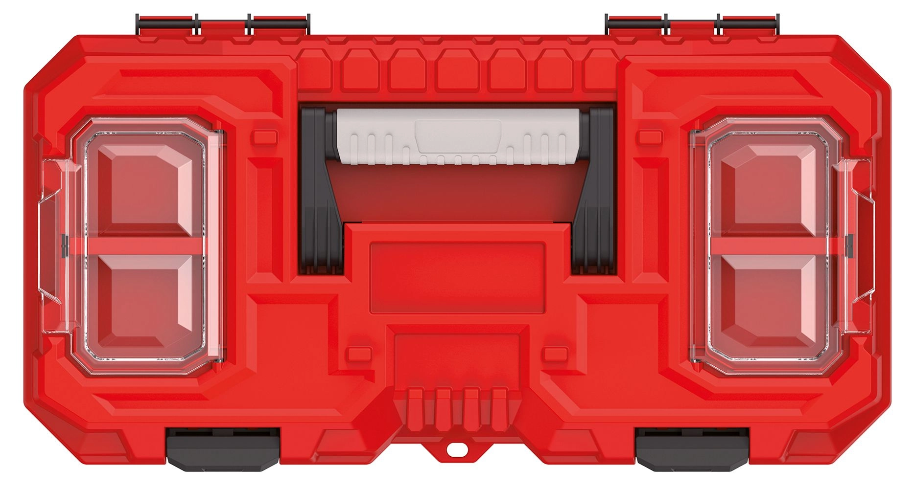 Zoekt u een betrouwbare en draagbare oplossing voor het opbergen van gereedschap? De TITAN PLUS gereedschapskoffer biedt een combinatie van duurzaamheid en slimme organisatie. Het rode deksel met geïntegreerde transparante vakken houdt kleingoed altijd binnen handbereik, terwijl het ruime hoofdcompartiment plaats biedt aan gangbaar gereedschap en accessoires. De uitneembare inzet organizer vereenvoudigt sorteren en snelle toegang.