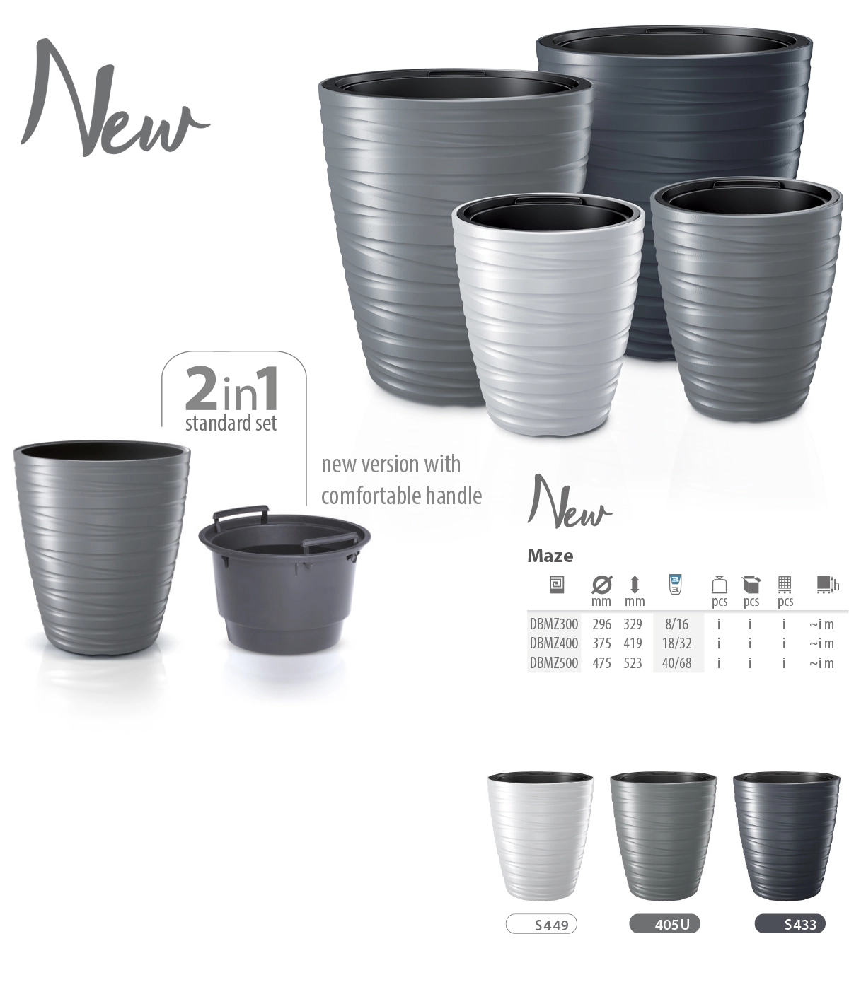 De bloempot met inzet MAZE in de kleur grijze steen past perfect in zowel moderne als klassieke interieurs en exterieurs. Duurzaam plastic zorgt voor een lange levensduur, minimaal onderhoud en de mogelijkheid tot gebruik het hele jaar door, zowel buiten als binnen. Dankzij de binneninzet wordt overtollig water effectief afgevoerd, wat optimale omstandigheden voor de wortels creëert en het risico op overbewatering vermindert.