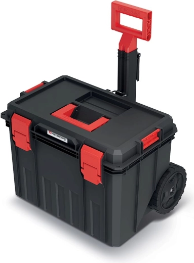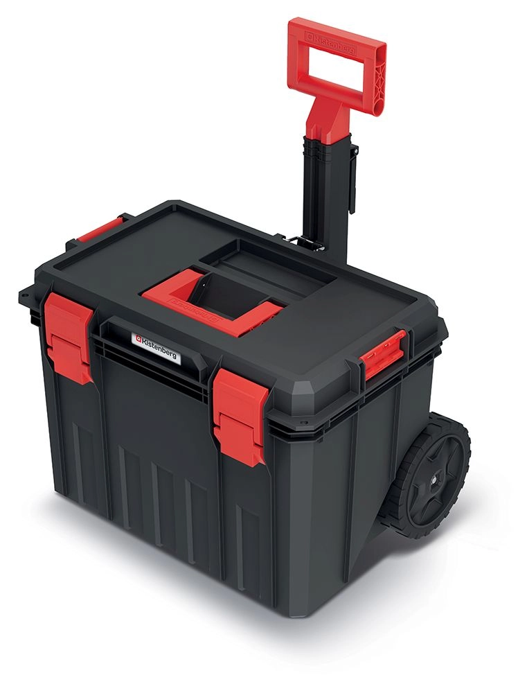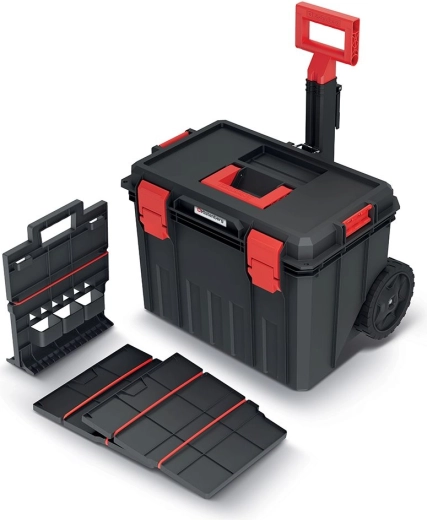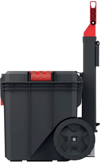 De gereedschapskoffer met afmetingen 530 × 355 × 390 mm is ontworpen voor dagelijks gebruik op de bouw, in de werkplaats of in de garage. Grote wielen, een telescoopgreep en een stevig bovenhandvat zorgen voor comfortabel en veilig manoeuvreren, terwijl robuust kunststof bestand is tegen schokken en zware omstandigheden.