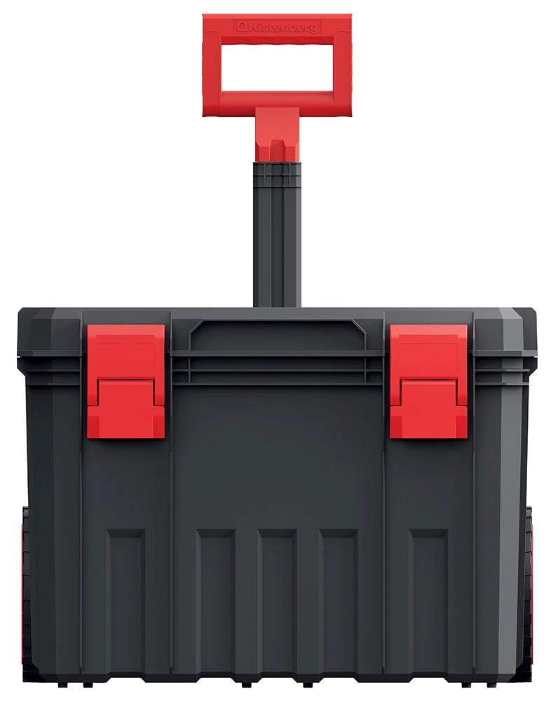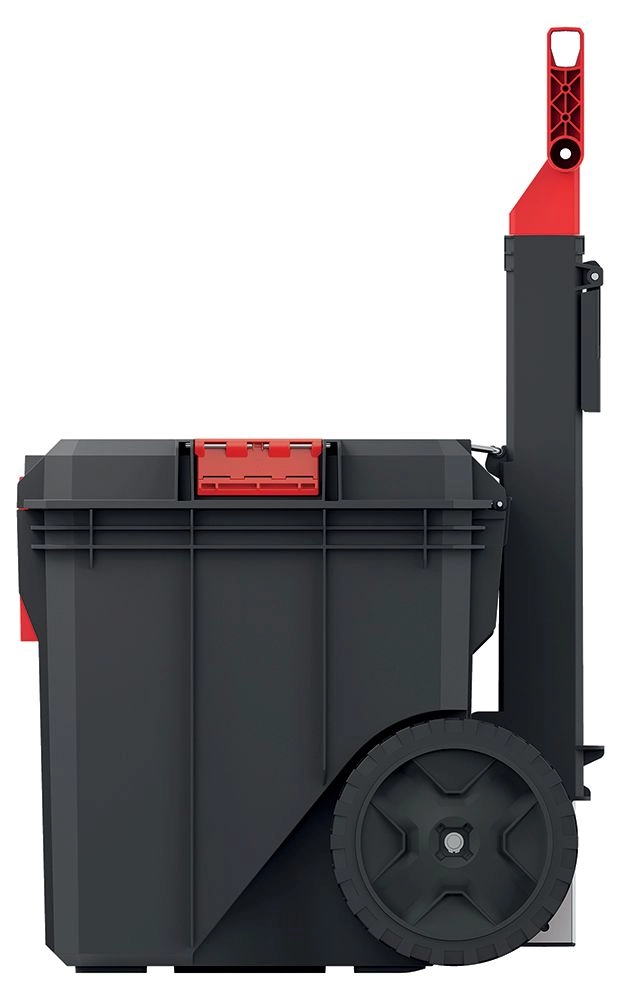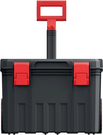 Grote, duurzame wielen en een uitschuifbare greep zorgen voor comfortabel verplaatsen van de koffer, zelfs volledig beladen, in de werkplaats, op de bouw of over oneffen terrein.