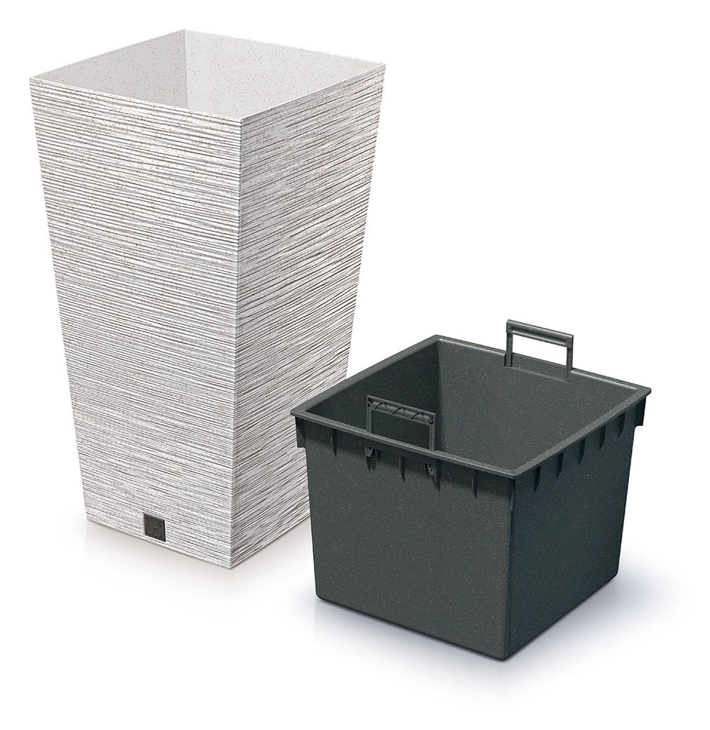 De Furu Square Eco Wood bloempot combineert een natuurlijke uitstraling met moderne functionaliteit. Dankzij de realistische houtstructuur geeft hij planten een elegant kader en behoudt hij tegelijk de voordelen van slijtvast kunststof. De geïntegreerde inzet bespaart substraat, vereenvoudigt verpotten en ondersteunt een correcte waterhuishouding.