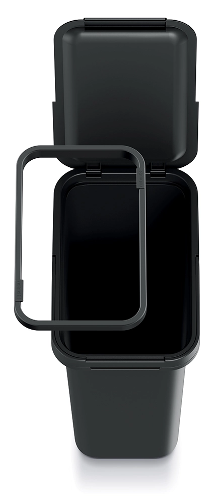 De prullenbak Systema 12 l is een betrouwbare oplossing voor het dagelijks scheiden van afval. Hij is gemaakt van duurzaam plastic, is eenvoudig te reinigen en dankzij het modulaire ontwerp kunt u hem combineren met andere bakken uit de serie voor overzichtelijke organisatie. De elegante gerecyclede zwarte kleur en de minimalistische look passen in keukens, badkamers en kantoren.