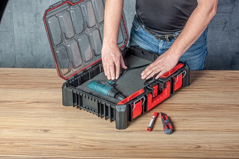 Praktische schuiminlage van duurzaam polyethyleen voor het veilig opbergen en organiseren van gereedschap in koffers en boxen. Je kunt het eenvoudig op de exacte contouren van afzonderlijke tools uitsnijden, zodat je stevige fixatie en bescherming tijdens transport garandeert. Het materiaal is bestand tegen vocht, chemicaliën en schimmels, is licht, niet-absorberend en gemakkelijk te bewerken.