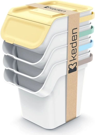 Elke bak heeft een inhoud van 20 liter en compacte afmetingen van 28,5 × 38 × 52,5 cm, waardoor hij gemakkelijk onder het aanrecht, in een kast of in een hoek past. De bakken kunnen afzonderlijk worden gebruikt of veilig op elkaar worden gestapeld, zodat je kostbare ruimte bespaart en overzichtelijk kunt scheiden.