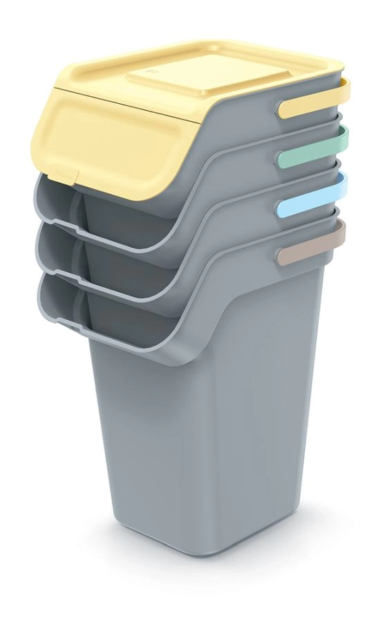 Dankzij de compacte afmetingen passen de bakken ook in smallere ruimtes, terwijl duurzaam kunststof met een glad oppervlak snel reinigen mogelijk maakt. De set is ideaal voor het scheiden van papier, plastic, glas en gft-afval en oogt dankzij de neutrale kleur onopvallend en clean.