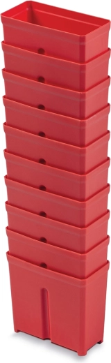 Houd orde en overzicht met deze praktische set van 10 kunststof bakken in het rood. Ideaal voor schroeven, spijkers, bevestigingsmateriaal en andere kleinigheden. De bakken zijn gemaakt van duurzaam kunststof en dankzij de doordachte vorm zijn ze eenvoudig te stapelen, zodat u elke centimeter ruimte efficiënt benut.