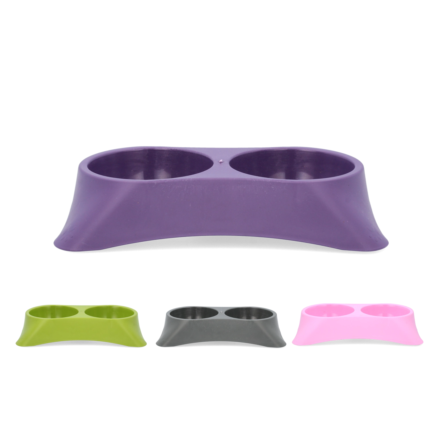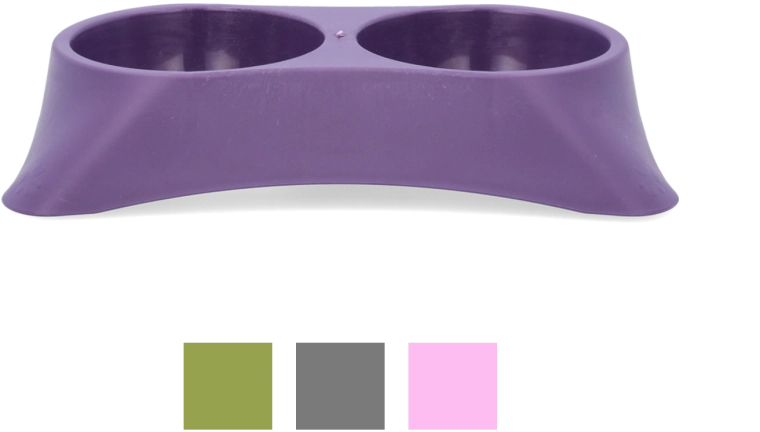 De dubbele constructie bespaart ruimte en houdt de voederplek overzichtelijk. Ideale inhoud 2 × 0,25 l voor kleinere honden en katten.