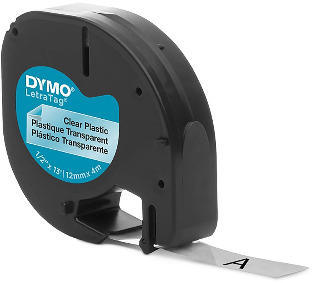 Universele labeltape DYMO LetraTag met een breedte van 12 mm en een lengte van 4 m van duurzaam kunststof. Biedt een transparante uitvoering voor een strakke en onopvallende labeling en is compatibel met alle LetraTag-labelmakers. De tape is eenvoudig te snijden en te scheiden, wordt geleverd in snel verwisselbare cassettes en is een kosteneffectieve oplossing voor het labelen van vrijwel alles in huis en op kantoor.