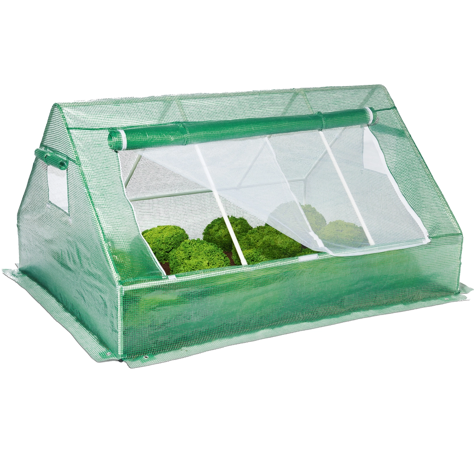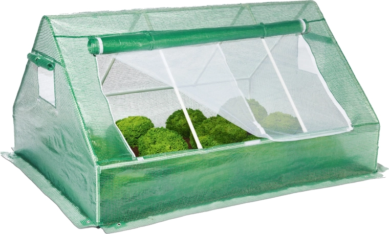Voor eenvoudige bediening is er een oprolbaar frontpaneel met rits en ventilatieramen met muggengaas, die zorgen voor luchtcirculatie en tegelijk ongedierte weren. De onderste grondflap kan met aarde worden bedekt voor betere verankering en minder tocht. Dankzij de snelle en eenvoudige montage is hij ook geschikt voor beginnende tuiniers.