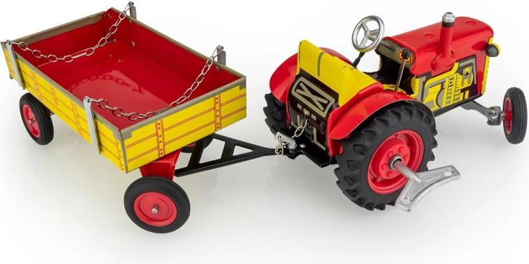Tractor Zetor met aanhanger op opwindsleutel metaal 28 cm KOVAP – Rood