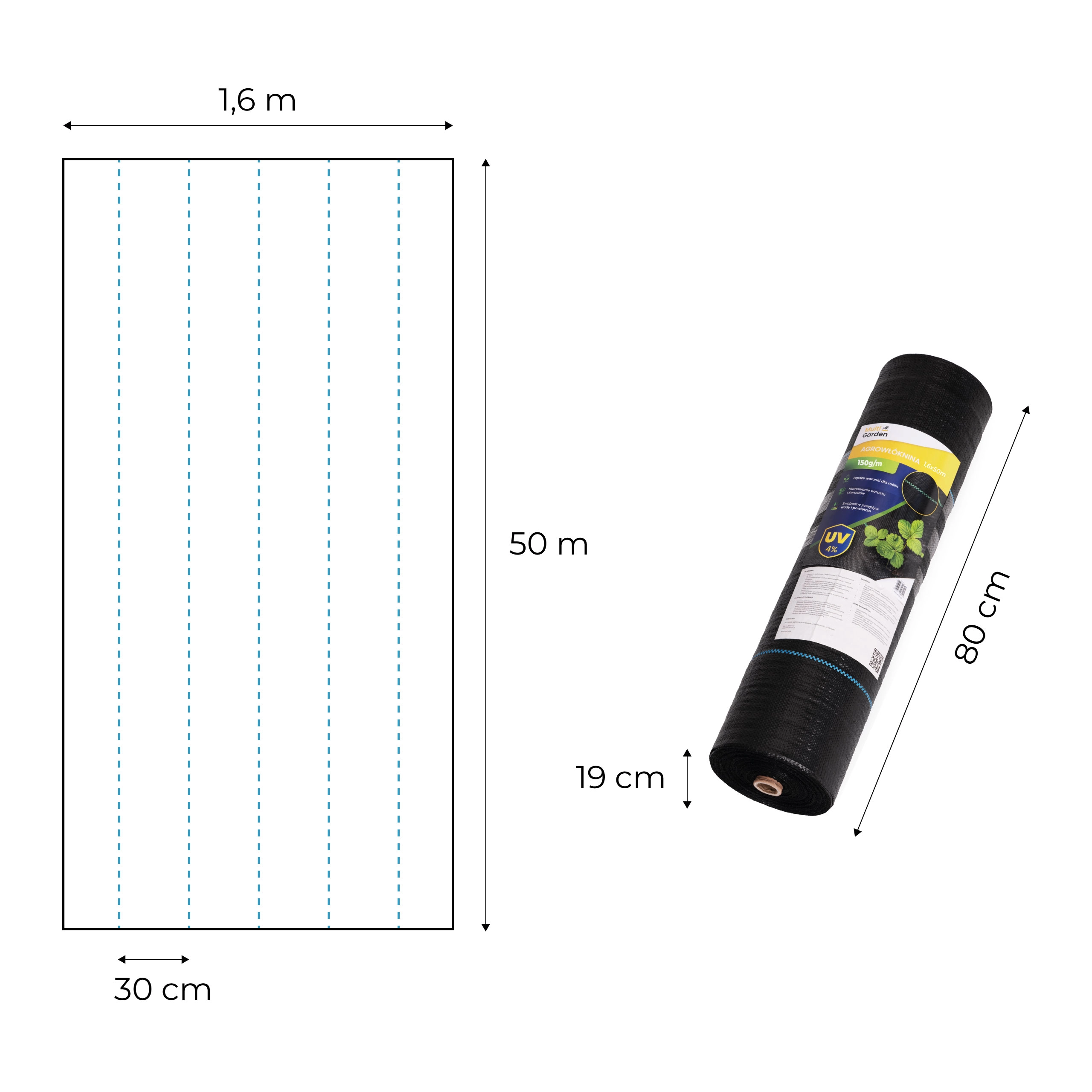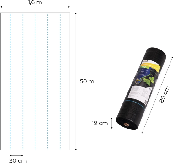 De blauwe hulplijnen om de 30 cm vergemakkelijken het nauwkeurig uitzetten van plantjes en het aanleggen van nette rijen. Het doek is ideaal onder mulch, schors, grind en sierkeien, op sier- en groenteborders, onder coniferen, struiken, bomen en zacht fruit, evenals op looppaden en paadjes. De meegeleverde grondpennen houden het materiaal stevig op zijn plaats, ook bij wind.