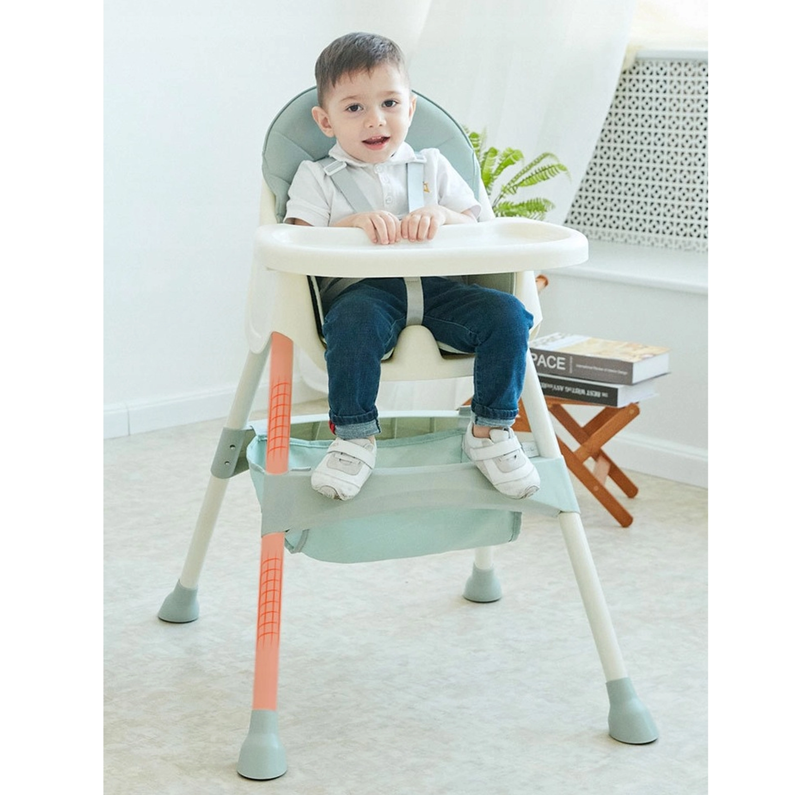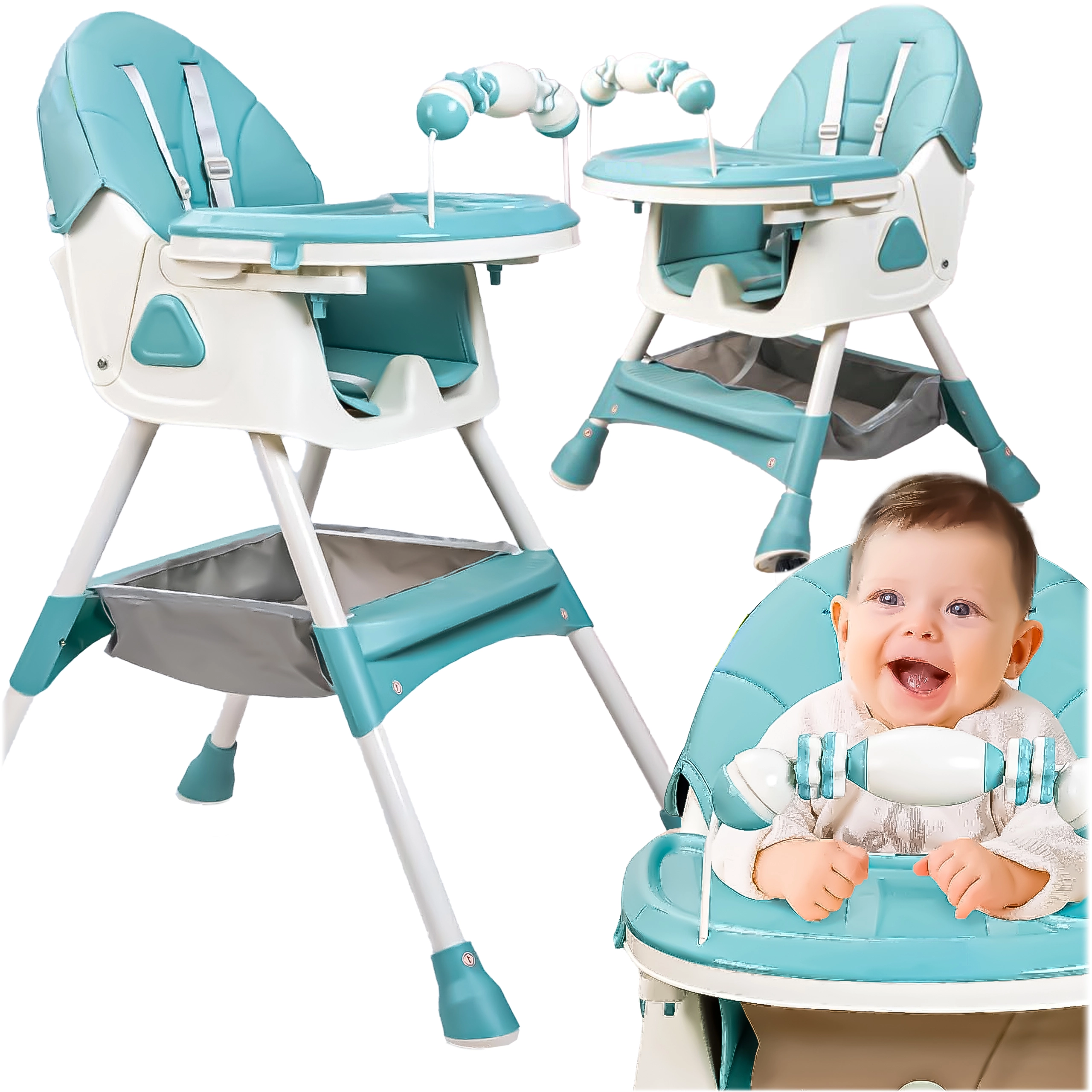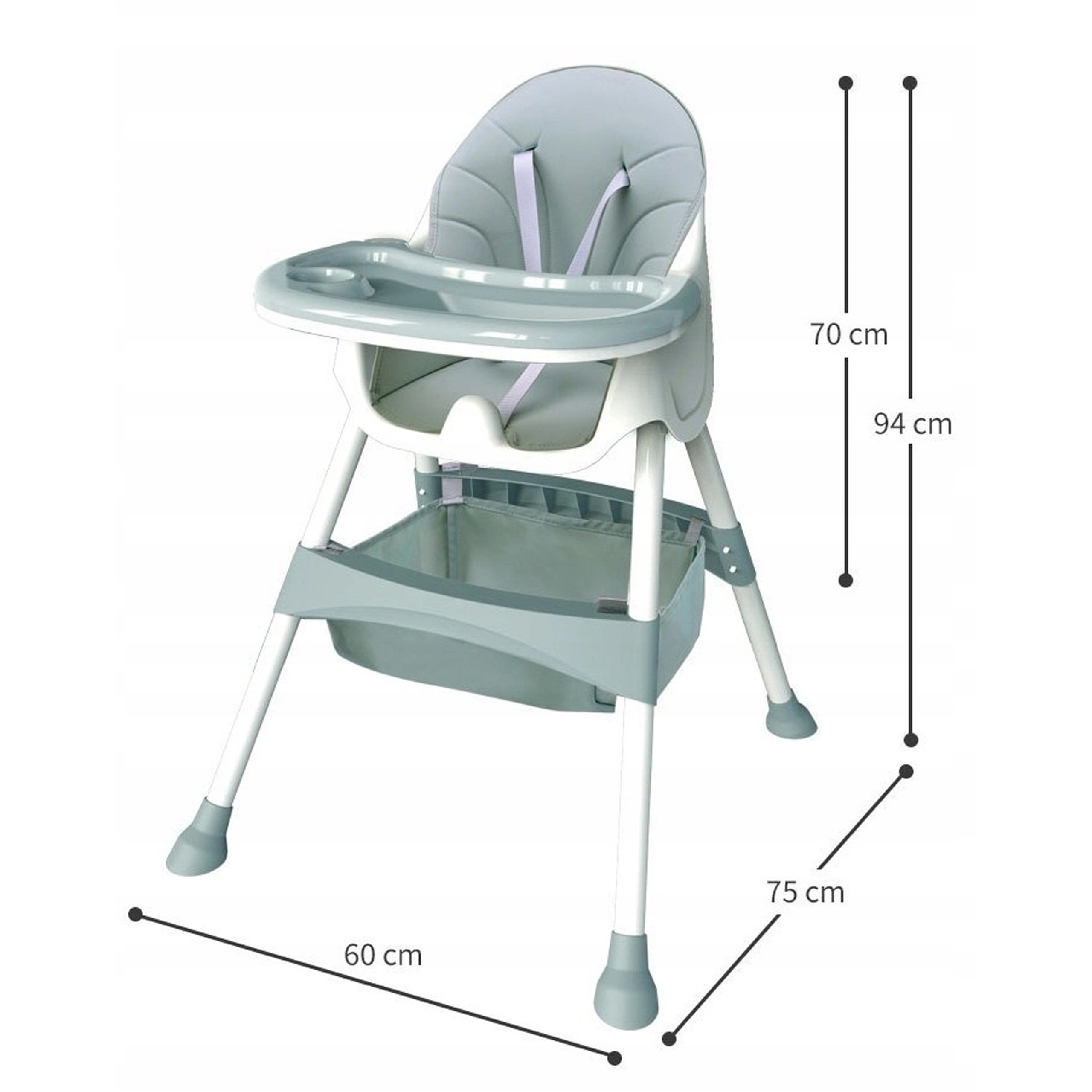 Praktische en lichte kinderstoel 3-in-1 die meegroeit met je kind vanaf ca. 6 maanden. Biedt twee hoogtestanden, een afneembaar eetblad met bekerhouder, comfortabele bekleding en een 5-punts veiligheidsgordel. Stabiele poten met antislipdoppen en een opbergmand onder de zitting zorgen voor veilig en comfortabel eten en spelen.