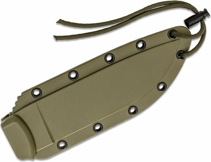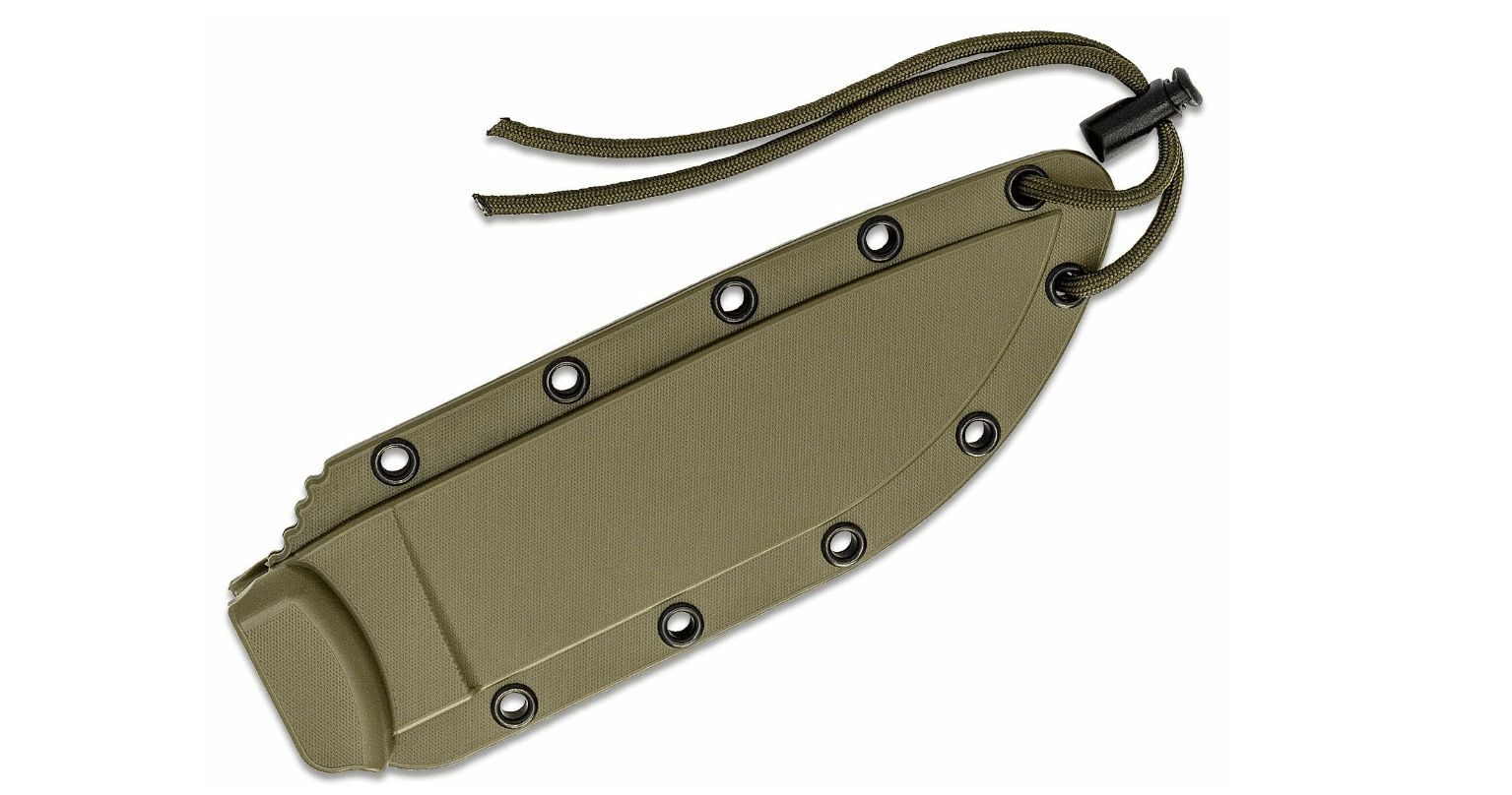 De full-tang constructie zorgt voor hoge sterkte over de volledige lengte van het mes. De groen getinte micarta handgreep ligt ook bij vocht goed in de hand en dankzij het koordoog kun je het mes zekeren of de greep uitbreiden. In de verpakking zit een duurzame polymeer schede voor veilig en snel opbergen.