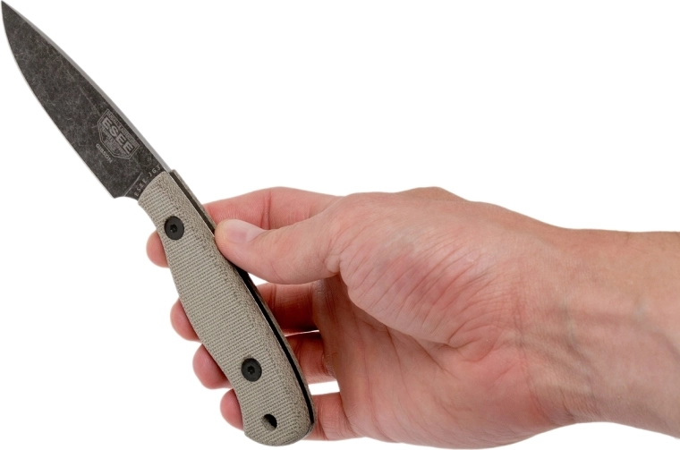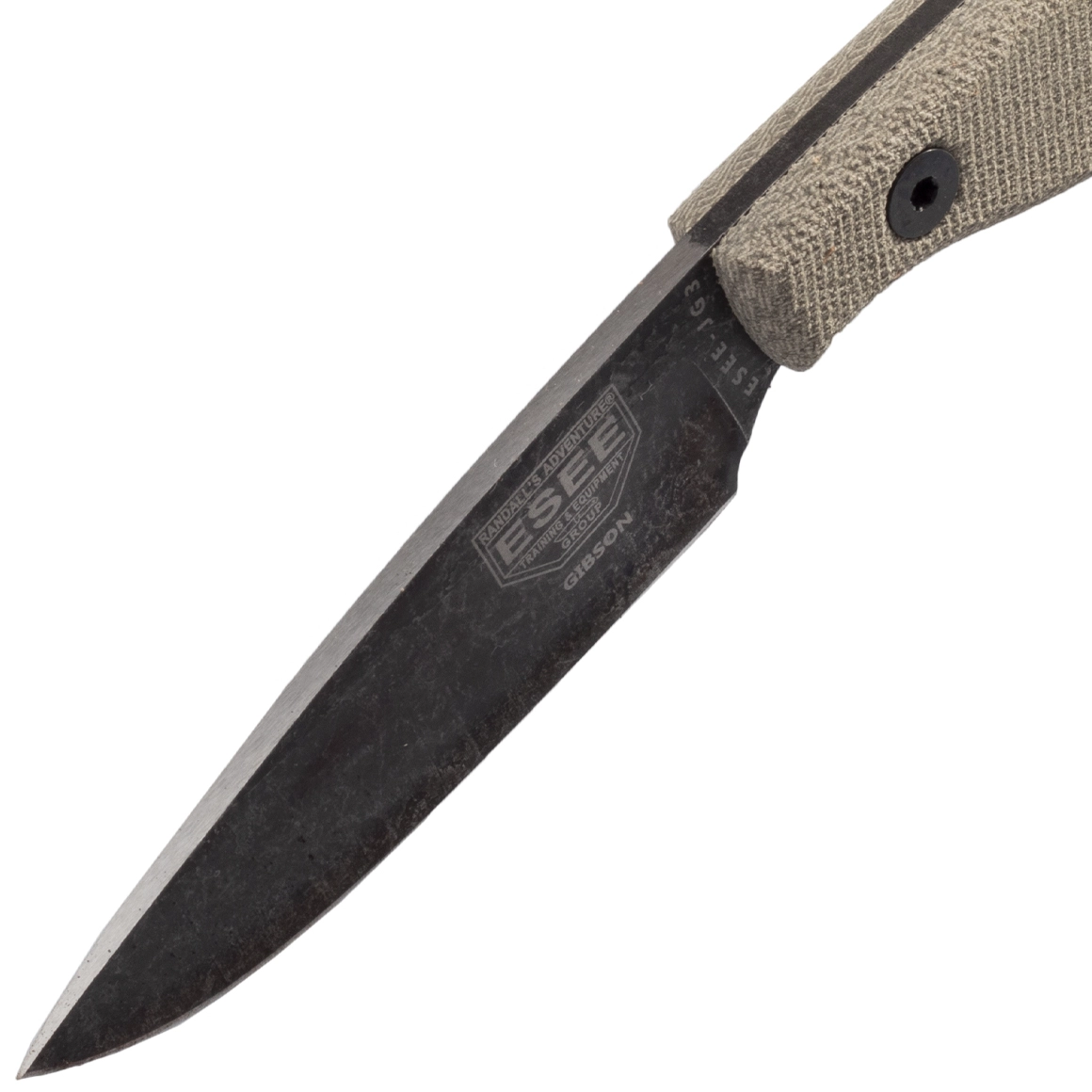 Het model ESEE JG3 Camp-Lore, ontworpen door James Gibson, is geworteld in de bushcrafttraditie en gebouwd voor dagelijks werk in de buitenlucht. De full-tang constructie biedt maximale duurzaamheid, het lemmet van 1095 koolstofstaal behoudt uitstekend zijn scherpte en de Stonewash Black Oxide-afwerking helpt beschermen tegen corrosie. Voor een lange levensduur wordt aangeraden het lemmet droog te houden en af en toe te oliën.