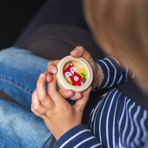 Dankzij het stevige houten lichaam en de transparante kap is het speelgoed duurzaam en veilig. Het ligt perfect in kinderhanden en past gemakkelijk in een rugzak – geweldig voor onderweg, in de wachtruimte en thuis.