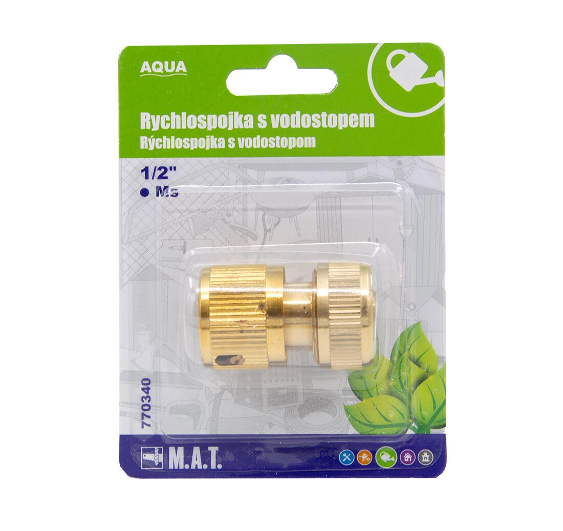Snelkoppeling 1/2 met waterstop van messing AQUA