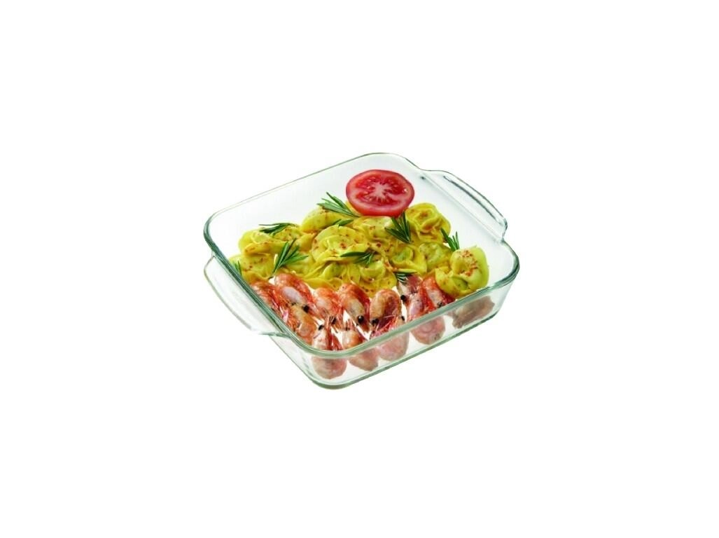 Praktische vierkante schaal van hittebestendig borosilicaatglas SIMAX met een inhoud van 1,6 l, ideaal voor ovengerechten, stoven en bakken. Bestand tegen temperaturen van −40 °C tot +300 °C, geschikt voor alle soorten ovens, vaatwasser en voor het bewaren van etenswaren in de koelkast. Gemaakt van glas zonder cadmium en lood, goedgekeurd voor contact met levensmiddelen in huishoudens en professionele keukens.