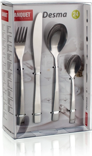 Elegante 24-delige bestekset DESMA voor dagelijks gebruik en feestelijke gelegenheden. Hoogwaardige roestvrijstalen afwerking met hoogglans zorgt voor een lange levensduur en eenvoudig onderhoud. De set bevat alles wat nodig is voor zes personen: lepels, vorken, messen en theelepels met een doordachte materiaalsterkte voor comfortabel gebruik.