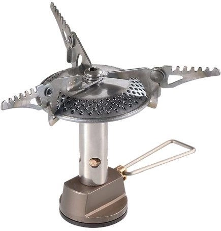 Licht en compact eenpits gasstel Hiker van het merk MEVA is ideaal voor kamperen, wandelen en reizen. Biedt een stabiele constructie dankzij het uitklapbare kookrooster en eenvoudige bediening voor het snel bereiden van maaltijden in het veld.
