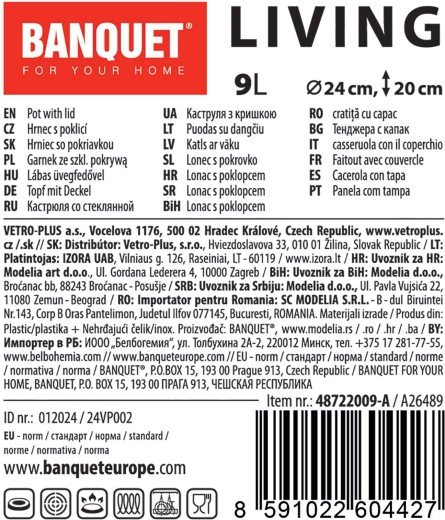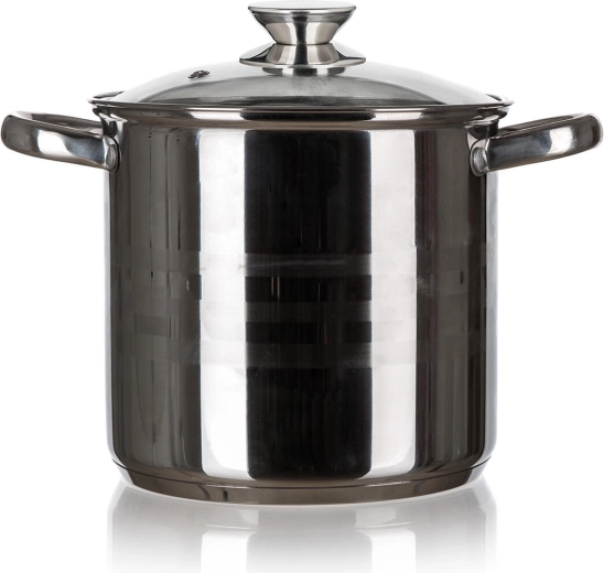 De roestvrijstalen pan LIVING combineert een elegante uitstraling met dagelijks gebruiksgemak. Dankzij het grote volume van 9 liter is hij perfect voor gezinsmaaltijden en het bereiden van bouillons. Het glazen deksel maakt controle tijdens het koken mogelijk zonder onnodig warmteverlies, terwijl de robuuste roestvrijstalen handgrepen zorgen voor comfortabele hantering.