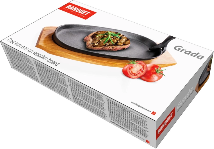 Ontdek de robuuste gietijzeren pan GRADA, die dankzij de dikke wanden warmte uitstekend opslaat en gelijkmatig verdeelt. Perfect voor scherp aanbraden, bakken in de oven en stijlvol serveren direct op tafel. Inclusief een precies passend houten plankje dat oppervlakken beschermt en het dragen vergemakkelijkt.