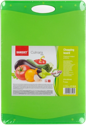Praktische snijplank in DUO-uitvoering combineert twee groentinten en antislipelementen voor extra zekerheid tijdens het werk. Dankzij de hoogwaardige kunststof is hij duurzaam, mesvriendelijk en eenvoudig te onderhouden – ideaal voor elke keuken.