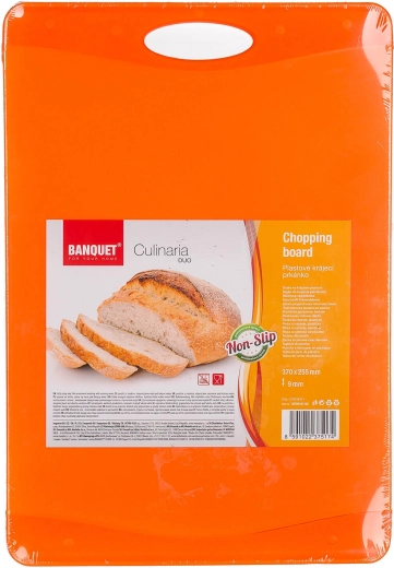 Ontdek de betrouwbare DUO snijplank in een modern tweekleurig oranje design. Antislip elementen zorgen voor stabiliteit op het werkblad, waardoor snijden veilig en precies is. Het gladde oppervlak van hoogwaardige kunststof reinigt snel en neemt geen geuren op.
