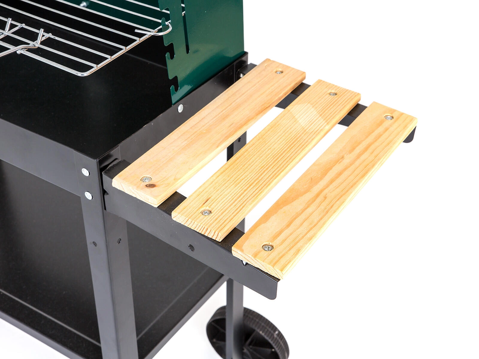 Geïntegreerde transportwielen maken snel verplaatsen van de barbecue op terras of in de tuin moeiteloos.