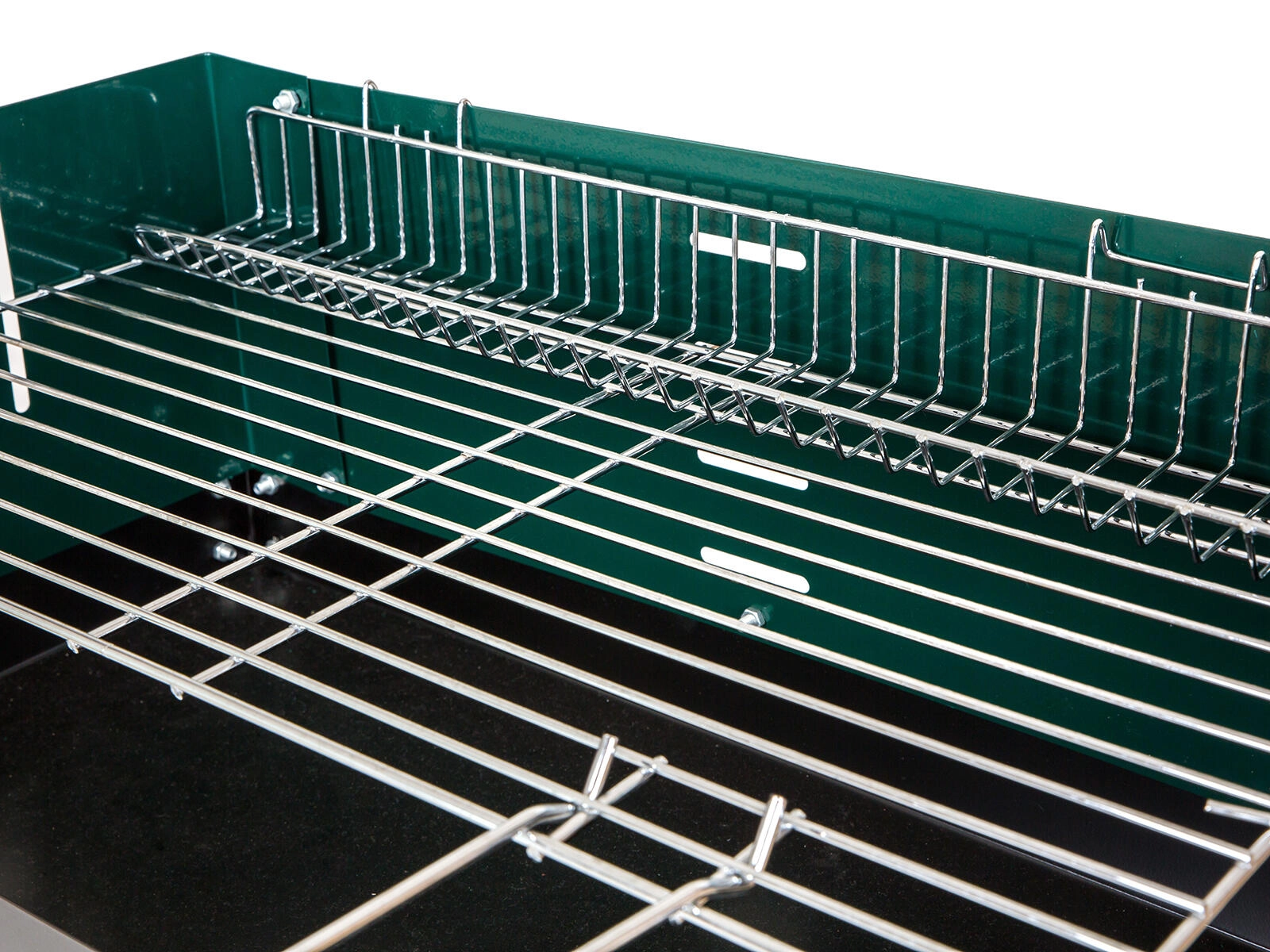 Duurzame verchroomde roosters zorgen voor gelijkmatige garing en comfortabel opwarmen van bereide gerechten met een breedte van 46 cm.