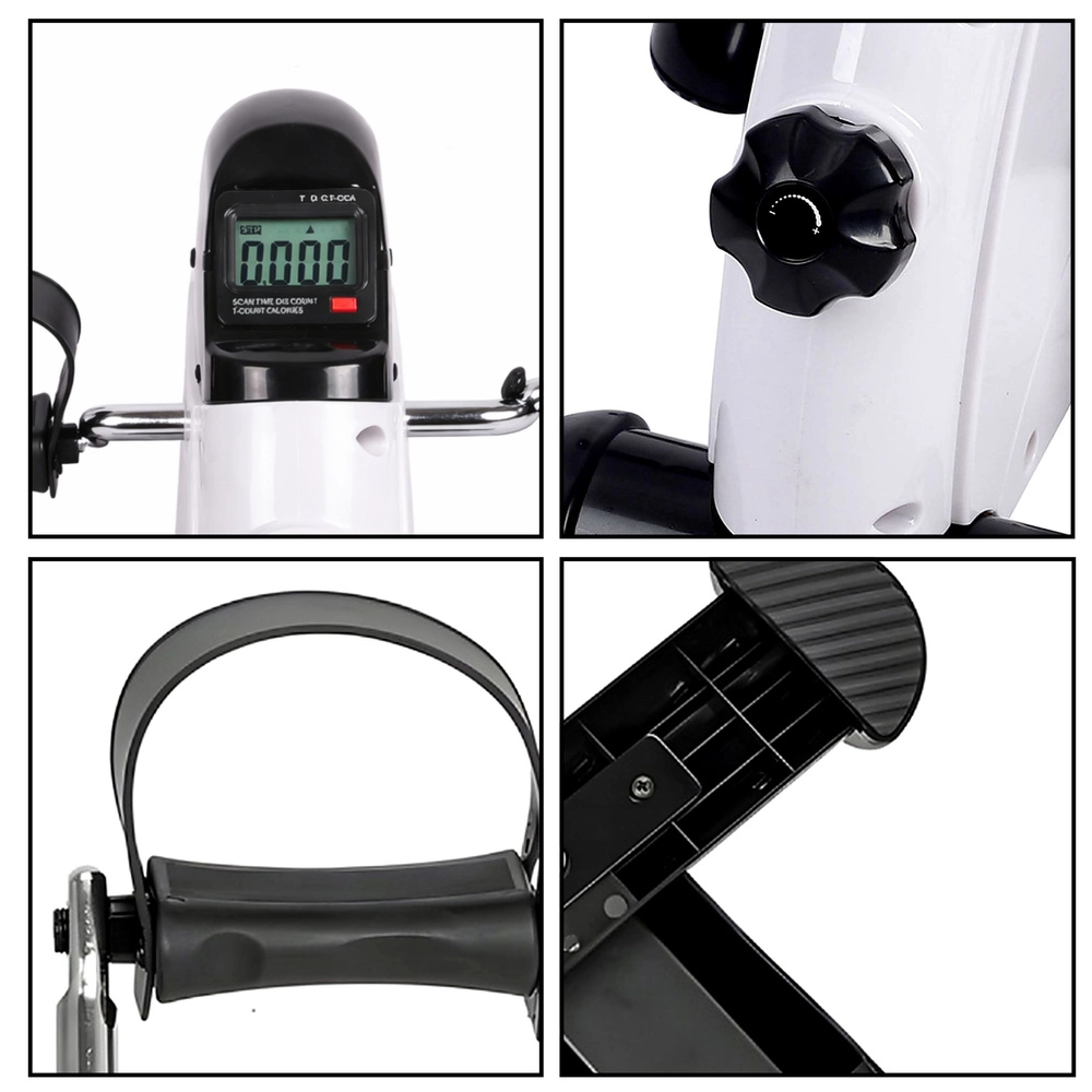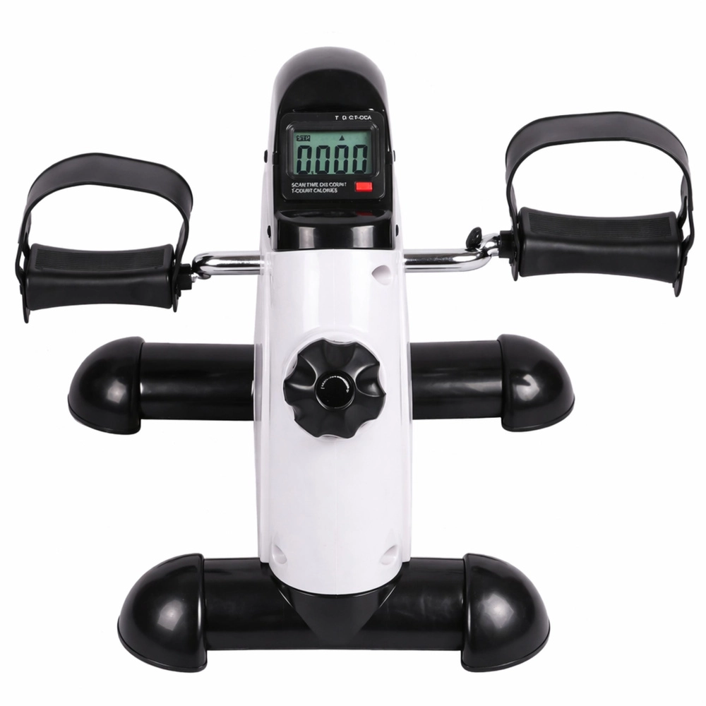 Mini hometrainer onder het bureau met lcd-display voor handen en voeten