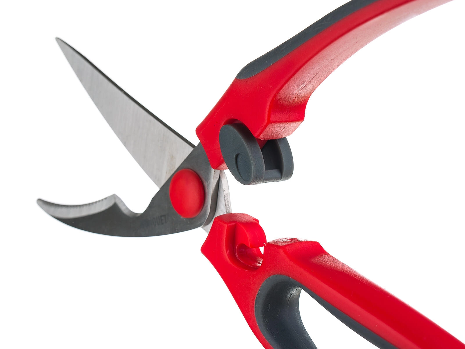 De Culinaria-gevogelteschaar is ontworpen voor snel en schoon portioneren van zowel gebraden als rauw gevogelte. Het gebogen snijblad vergemakkelijkt het leiden van de snede langs botten en voorkomt het uitscheuren van het vlees. De robuuste stalen bladen zorgen voor een lange levensduur en blijvende scherpte.