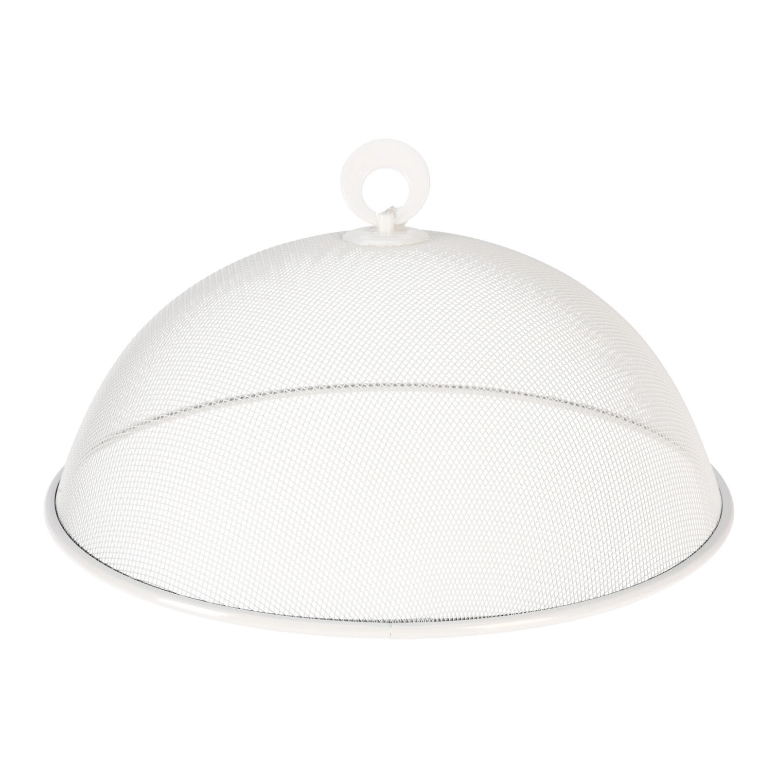 Praktische metalen voedselkap met een diameter van 30 cm beschermt eten en drinken betrouwbaar tegen insecten en vuil. Dankzij het fijne gaas blijft er voldoende luchtcirculatie terwijl het tegelijk zorgt voor een veilige afdekking voor serveren in huis, op het balkon en in de tuin. Duurzame metalen uitvoering met een stevige rand en een praktische grijpring voor moeiteloze handling. Verkrijgbaar in populaire kleuren – wit, grijs, groen.