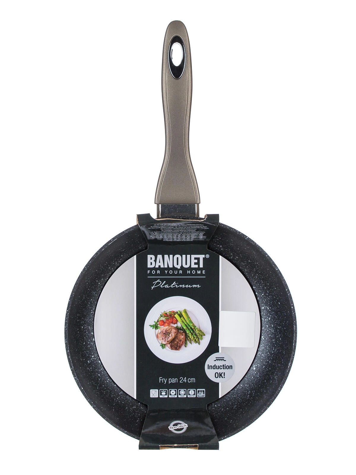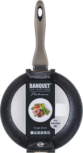 De BANQUET Metallic Platinum pan (24 cm) is gemaakt van gegoten, gesmeed aluminium, dat uitblinkt in hoge thermische geleidbaarheid en weerstand tegen schokken en vervorming. De speciale antiaanbaklaag, hard en krasbestendig maakt koken met een minimum aan vet mogelijk en zorgt voor het gemakkelijk loslaten van voedsel. De buitenste carbon-metallic coating geeft een moderne look en hoge duurzaamheid.