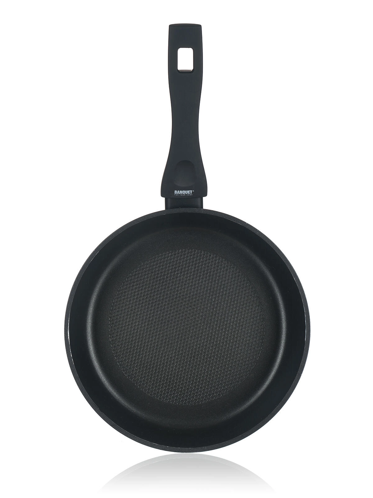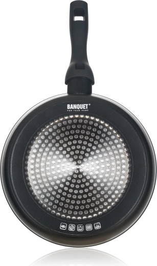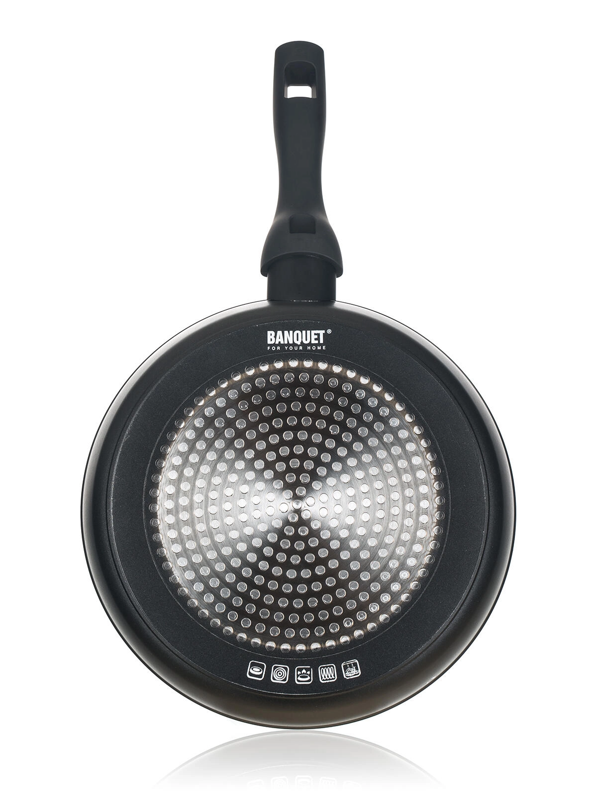 Het gesmede aluminium lichaam met een wanddikte van 4 mm verdeelt de warmte snel en gelijkmatig, zodat gerechten efficiënt garen zonder hotspots.