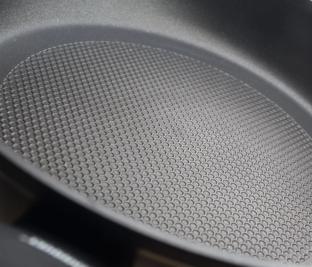 De drielaagse Zwitserse ILAG PREMIUM-technologie zorgt voor een uitstekende loslating van gerechten, minder oliegebruik en een lange levensduur van het oppervlak.