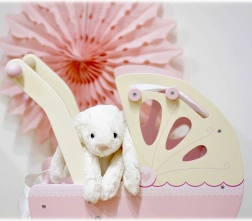 Geef kinderen de magie van fantasierijk spel met de Sweet Dreams poppenwagen, die uitblinkt met een zacht design met hartjes en kant, een stabiele houten constructie en praktische details voor dagelijkse “wandelingen” met poppen. Dankzij de rubberen wielen is het rijden stil en soepel op alle oppervlakken.