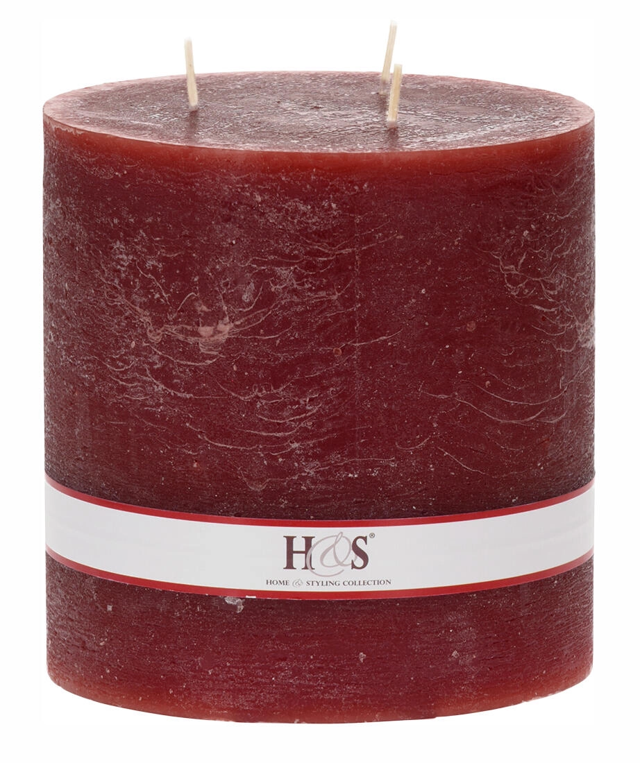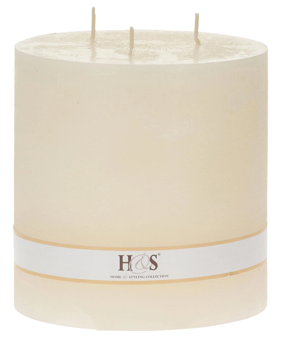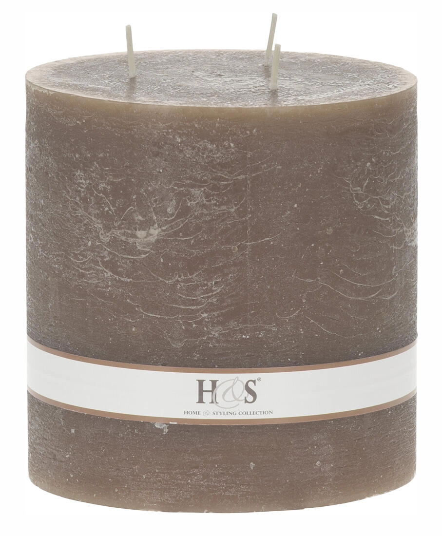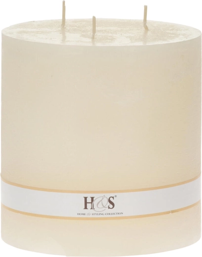 Elegante rustieke cilindervormige kaars met een diameter van 14 cm en een hoogte van 14 cm, voorzien van drie lonten voor een egale verbranding en intensere lichtopbrengst. Het gewicht van 1410 g zorgt voor een lange brandduur. Verkrijgbaar in een mix van stijlvolle kleuren om elk interieur te complementeren.