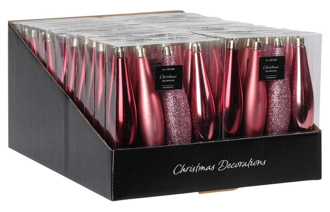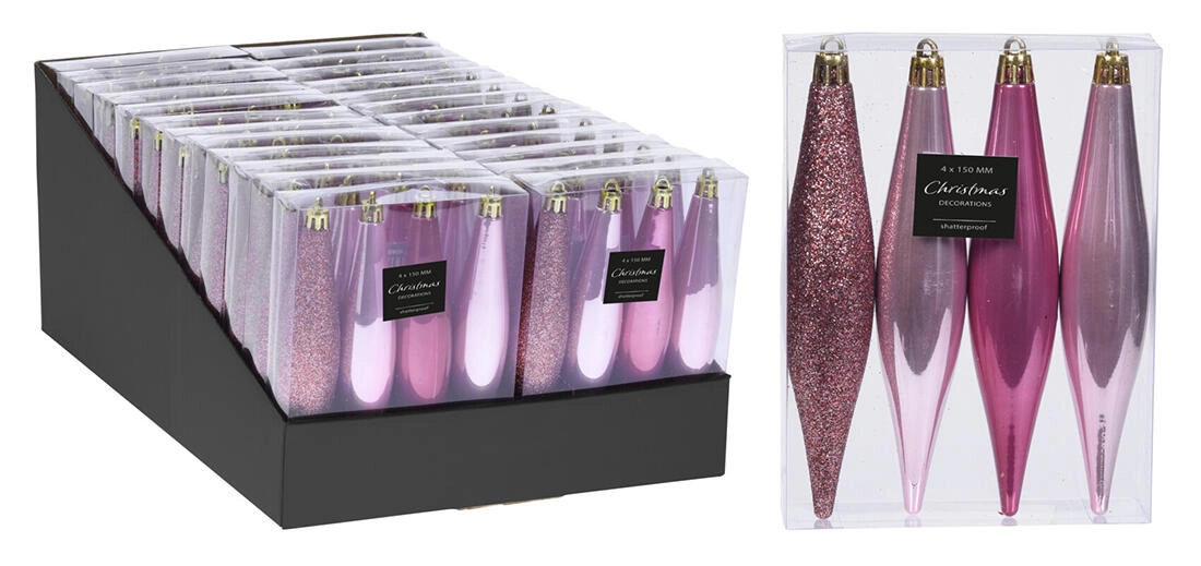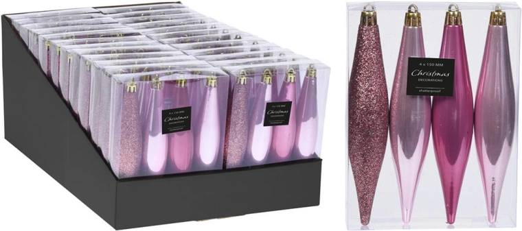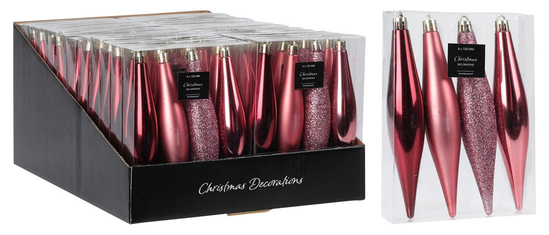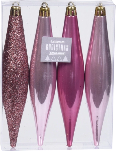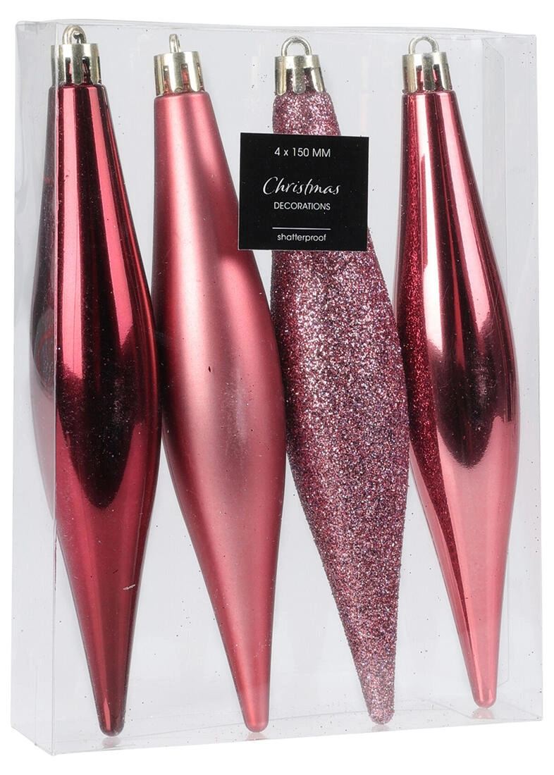 Elegante hangende kerstornamenten in de vorm van ijspegels geven je boom en interieur een vleugje winterse magie. De set bevat 4 stuks in roze met een mix van tinten voor een natuurlijke en stijlvolle uitstraling. Dankzij de hoogte van 15 cm komen ze prachtig tot hun recht tussen de takken en zijn ze gemakkelijk te combineren met andere kerstdecoraties.