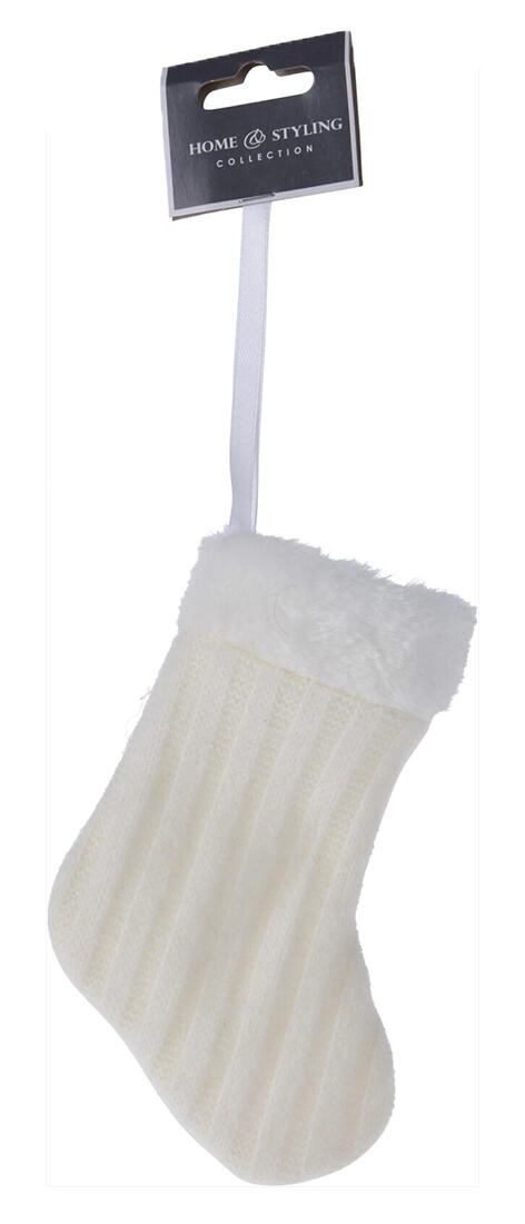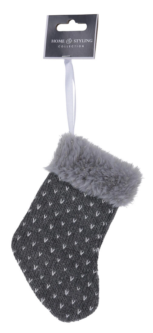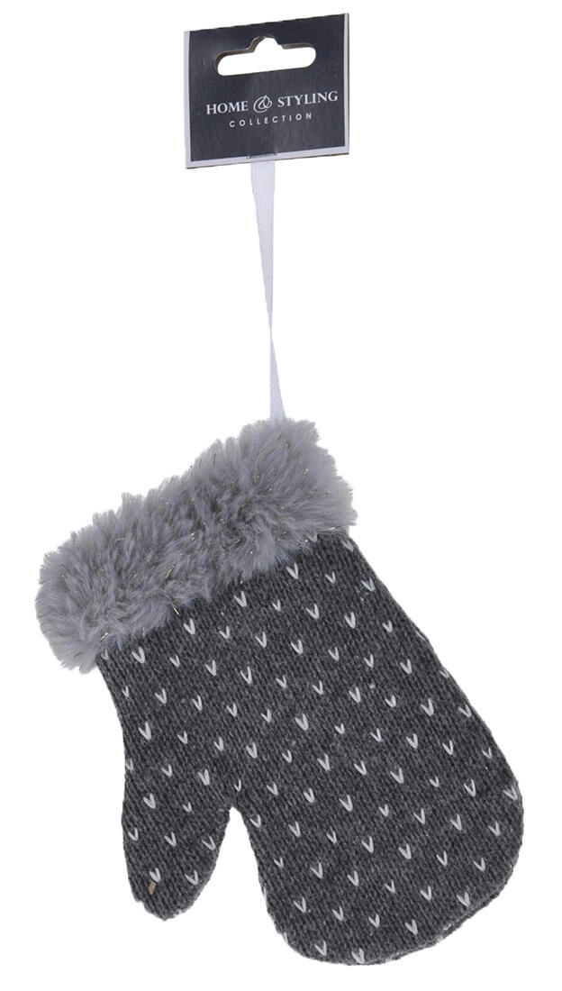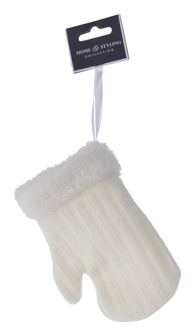 Stijlvolle hangdecoratie in de vorm van een want, kous en wintermuts met een hoogte van 15 cm geeft je interieur en boom een gezellige winterse sfeer. De zachte textiele stof, de pluizige bontrand en het subtiele gebreide patroon in wit en grijs laten zich eenvoudig combineren met andere versieringen. Dankzij het praktische lint om op te hangen plaats je ze in een handomdraai overal waar je wilt.