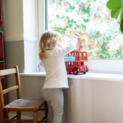 Ontdek de schoonheid van Londen met de houten dubbeldekkerbus van Le Toy Van. Dit iconische speelgoed, ontworpen met details zoals realistische markeringen en een afneembaar dak, biedt een geweldige manier om de verbeeldingskracht en fijne motoriek van kinderen te ontwikkelen.