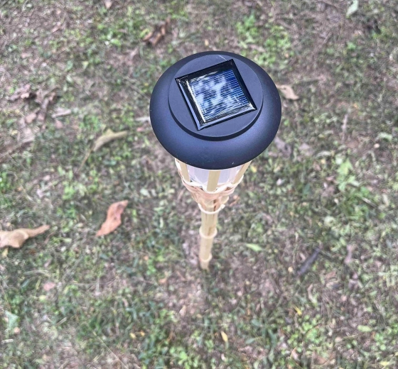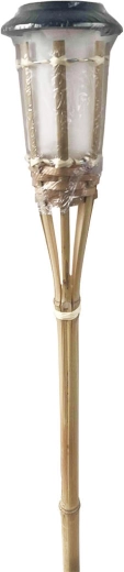 Geniet van sfeervolle buitenverlichting met een natuurlijke esthetiek. Deze zonne-energie bamboe fakkel combineert een elegante look met praktische werking op zonne-energie. Het ingebouwde polykristallijne paneel laadt overdag de batterij op en ’s avonds gaat de fakkel automatisch aan.