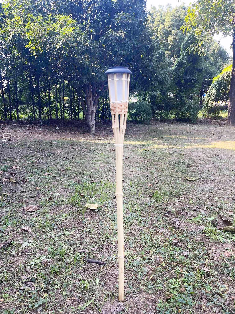 Stijlvolle zonne-energie bamboe fakkel brengt in je tuin of op het terras gezellig warm wit licht zonder kabels en zonder rook. Dankzij zonnestroom en automatisch inschakelen bij schemer is hij ideaal voor het verlichten van paden, pergola’s en balkons. Natuurlijk bamboe geeft een decoratieve uitstraling en de veilige werking zonder open vuur stelt iedereen gerust.
