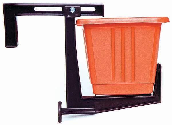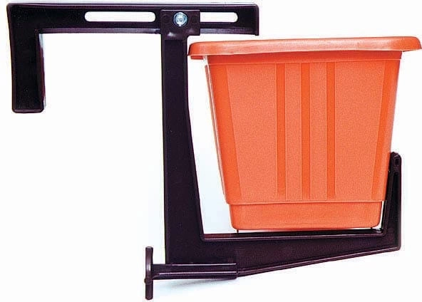 Praktische balkonhouder voor bloembakken van hoogwaardig kunststof in terracottakleur zorgt voor een veilige en horizontale bevestiging van de bloembak aan de balustrade. Dankzij het verstelbare systeem voor een breedte van 2–12 cm en de schuifbare steun blijft de bloembak stabiel, zonder dat aarde uitvalt of water wegloopt. Draagvermogen per paar tot 15 kg (voor bloembakken tot 60 cm) en bestendig tegen UV-straling en vorst voor een lange levensduur. Voor het ophangen van een bloembak zijn twee stuks nodig.
