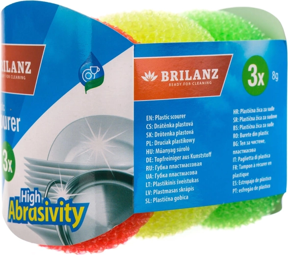 Praktische set kunststof schuursponzen in een mix van kleuren voor het dagelijks schoonmaken van de keuken. Ideaal voor mild maar effectief reinigen van vaatwerk en keukenoppervlakken. Verwijdert hardnekkig vuil zonder gevoelige oppervlakken te krassen, licht en comfortabel in de hand, verpakking 3 stuks voor langer gebruik.