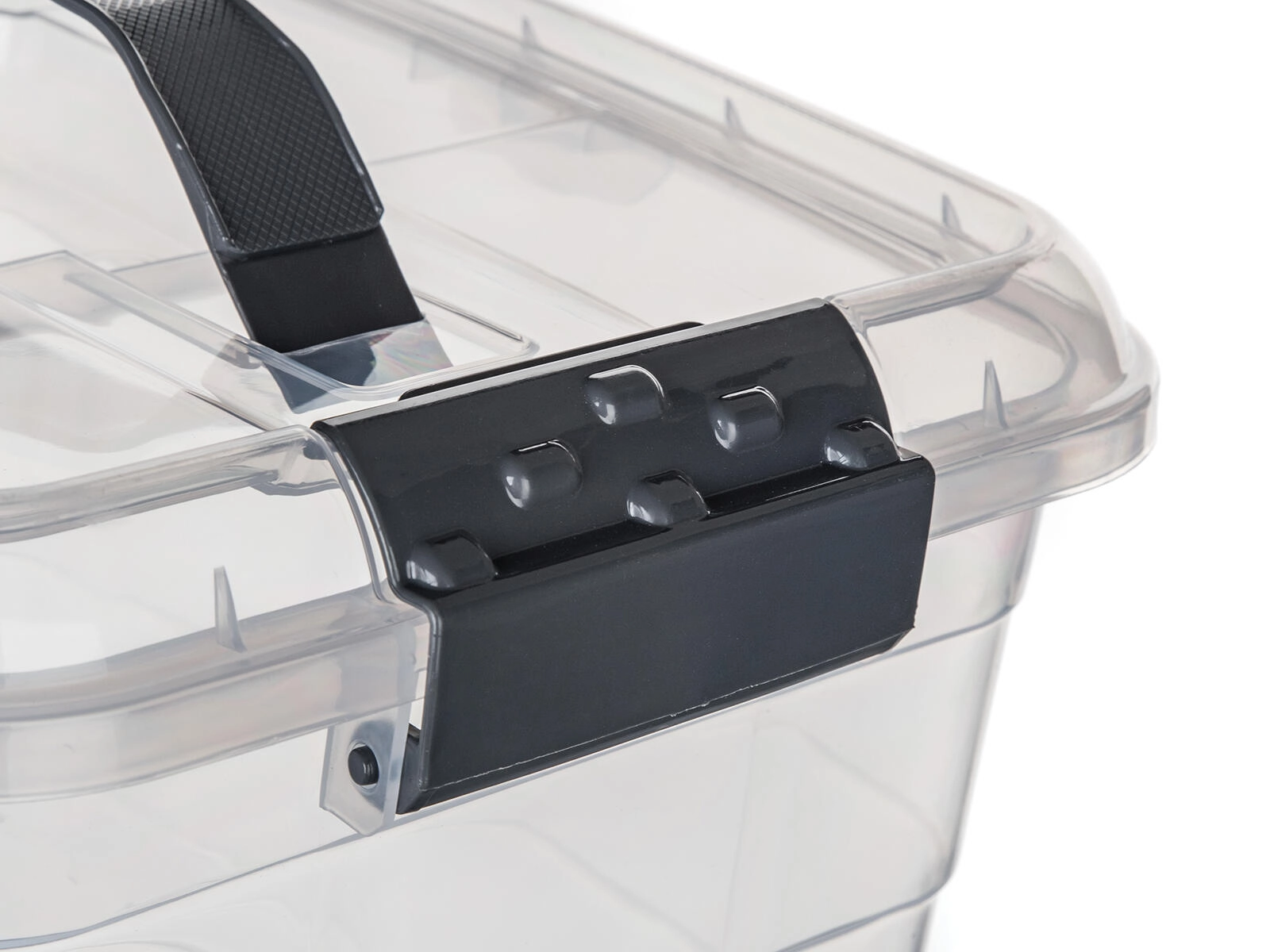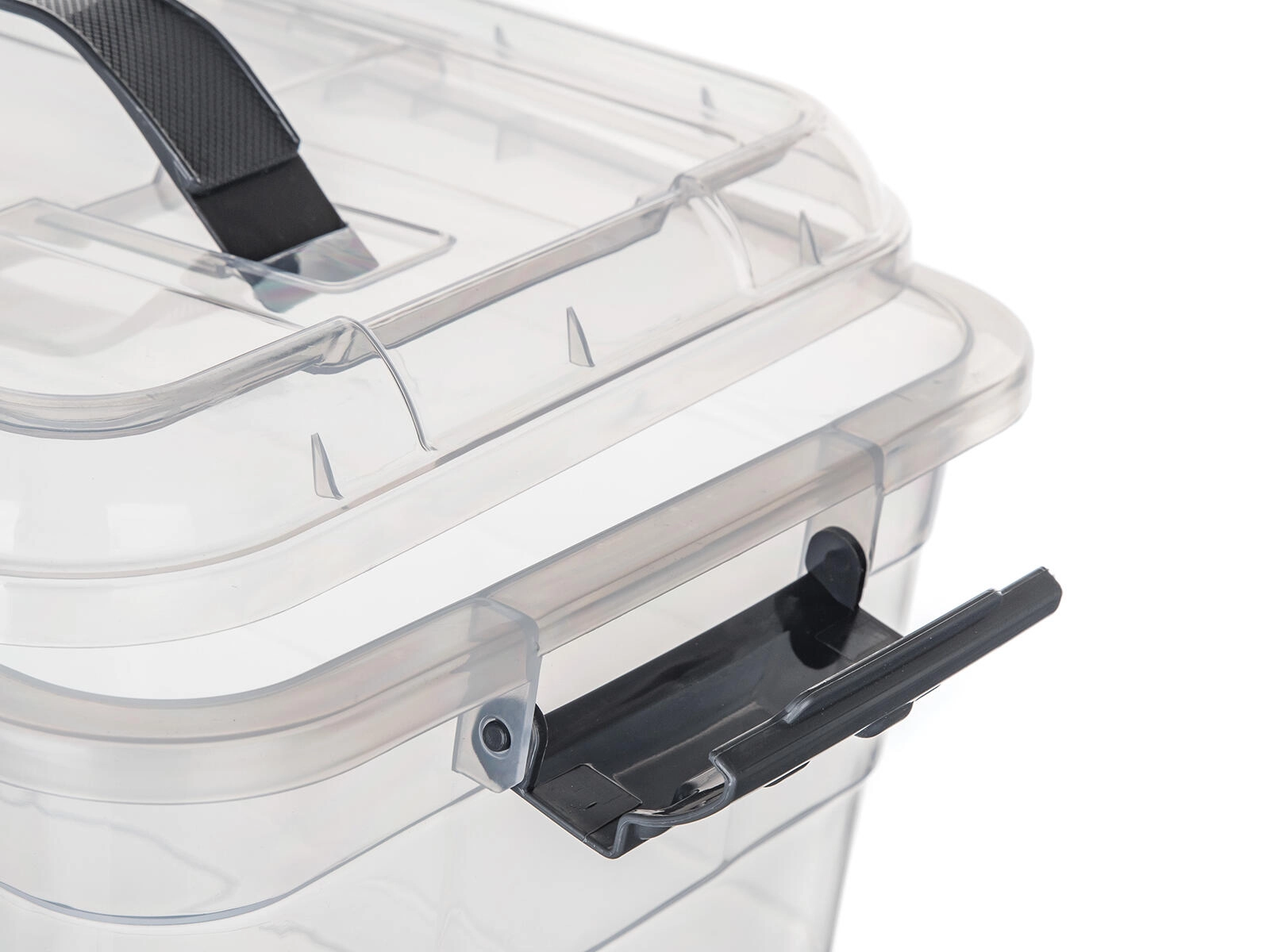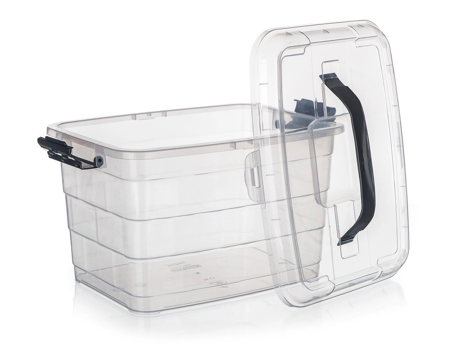 Houd orde in huis en op kantoor. De VILARD opbergbox met een inhoud van 14 liter combineert transparante wanden voor directe zichtbaarheid van de inhoud, een duurzame uitvoering en een veilige sluiting met stevige zijclips. Het geïntegreerde handvat in het deksel maakt hanteren en dragen makkelijker.