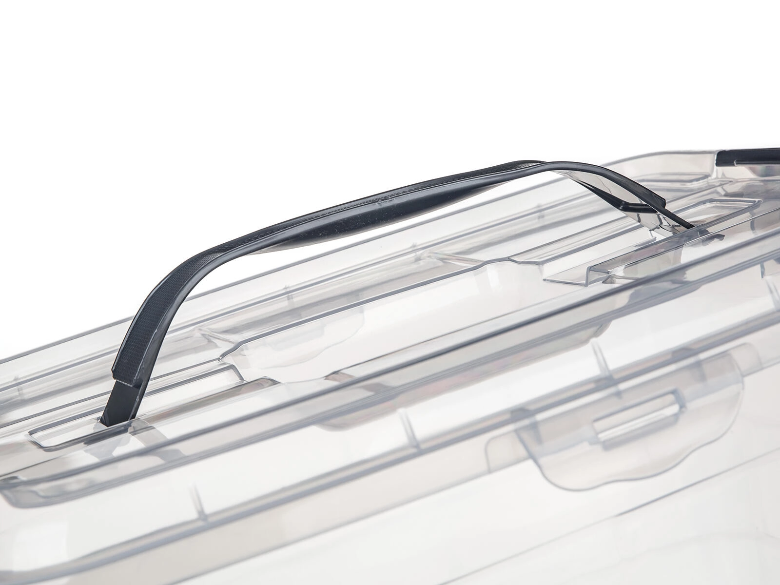 Het geïntegreerde handvat in het deksel vergemakkelijkt de handling en het dragen, zelfs wanneer de box volledig gevuld is. Ideaal voor organiseren en vervoeren.