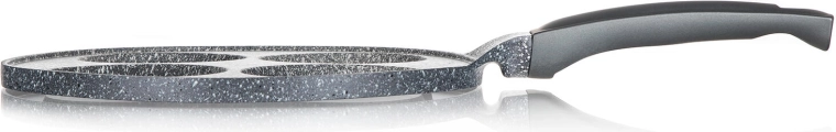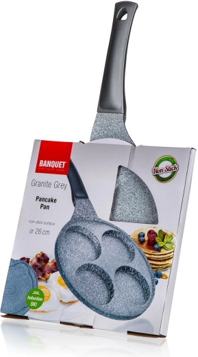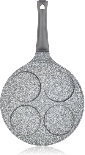 Praktische pannenkoekenpan met een diameter van 26 cm met GRANITE Grey oppervlak maakt het mogelijk om 4 perfect gevormde pannenkoeken, eieren of mini-omeletten te bereiden met een minimum aan vet. Dankzij de antiaanbaklaag, de inductiebodem en de ergonomische soft-touch handgreep is koken comfortabel en reinigen snel.