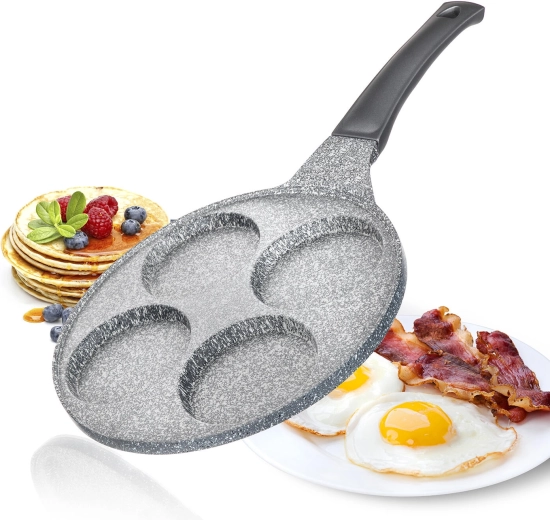 Bespaar tijd dankzij 4 ronde vormen – ideaal voor pannenkoeken, spiegeleieren en mini-omeletten met dezelfde afmeting en gelijkmatige garing.